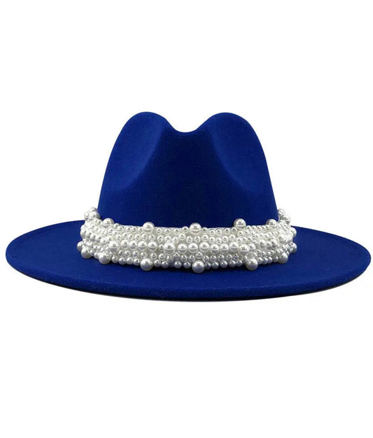Chapeau large bord avec un bandeau en perle